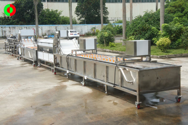 廣西客戶訂購了一條百香果加工生產線,生產線從網鏈氣泡清洗機進行預清洗到輸送至毛刷清洗去表面污垢,然后再到氣泡清洗深度清洗后進行風干出料;最后輸送提升到分瓣切割機進行果汁提取。生產線中間環節無需人工勞作,產能大,效果好。