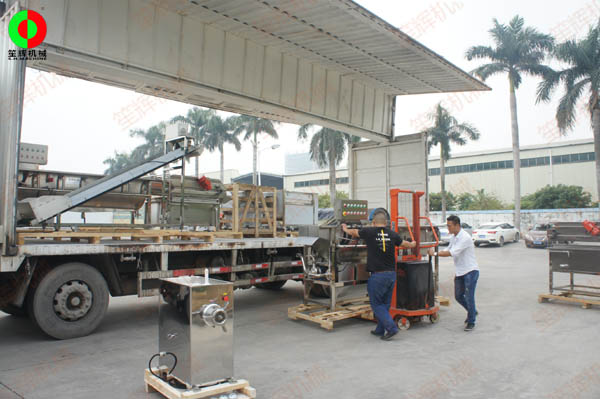 佛山市終端客戶馬先生經營著一家大型食品配送中心,業務涵蓋了蔬果加工配送及肉類加工配送等。日前在我司訂購了一大批蔬果加工和肉類加工機械,設備包括渦流洗菜機、提升機、蔬果三維切丁機、毛刷去皮機、切肉機、凍肉絞肉機等等。