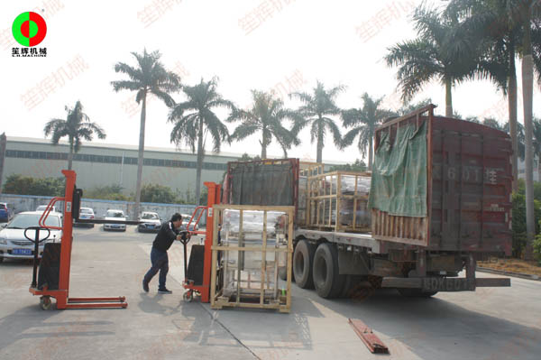 客戶訂購(gòu)的兩套渦流洗菜機(jī)裝車出貨
