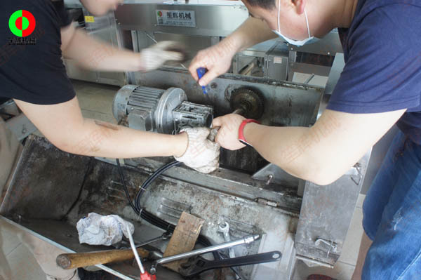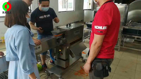 佛山客戶將多年老設(shè)備帶我司維修,并測試購買紅蘿卜削皮機(jī)!