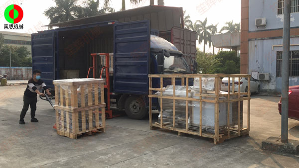 大批多途用自動洗菜機等蔬果加工機械裝車出貨!