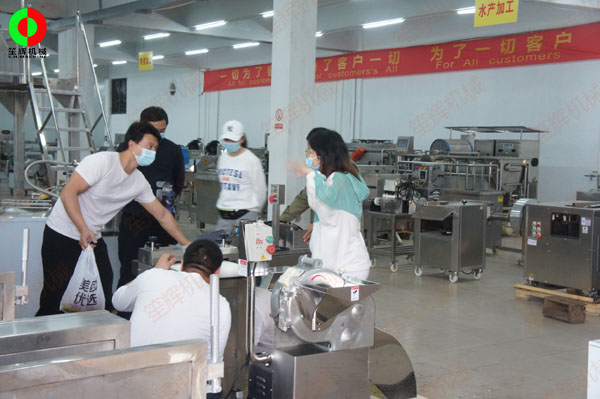 山東客戶一行親臨我司考察,購買魷魚去皮、魷魚切圈等水產(chǎn)加工設(shè)備!