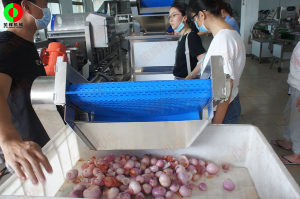 廣東惠州客戶王小姐親臨我司測(cè)試小洋蔥脫皮及打碎設(shè)備!我司洋蔥脫皮機(jī)運(yùn)用壓縮空氣作為動(dòng)力源,整個(gè)工作過(guò)程采用不用泡水,不用刀削,不磨損設(shè)計(jì),通過(guò)氣流進(jìn)行干式脫皮,確保洋蔥的完整度,適合蔬菜加工廠使用。