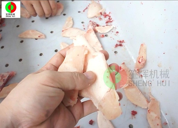 - 產品優勢: 本SH-120GS切排骨機,可切約-4攝氏單位以上溫度的凍排骨和雞胸肉等等,輸送帶速度采用變頻器可調從而實現切割尺寸的大小,輸送帶皮帶拆卸和安裝都很快捷方便,機器清洗和保養變得更容易。這種切排骨機適合大型食品加工廠,餐飲行業,飯堂,餐飲配送中心使用。
