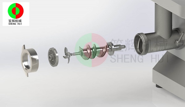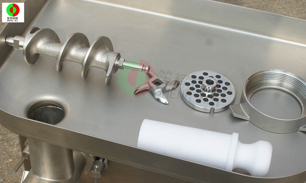 推料螺桿工作通過減速機和電機帶動。它只適用于豬肉、牛肉、油脂、混合肉、魚肉以及羊肉的切碎加工。其它原料的加工,要經過本公司的確認方可使用。