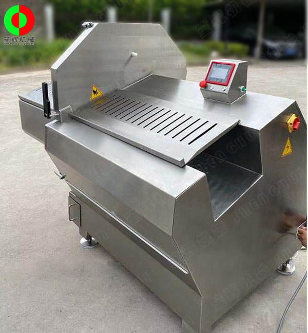 - 產品優勢: 本產品可切凍排骨、香腸、火腿、培根、魚、肉類等-8°C ~ -2°C的各料物料產品。產品進料倉寬大設計,切片寬度可達360MM;電腦控制轉速高,高品質切割效果,是用戶理想的切片設備。